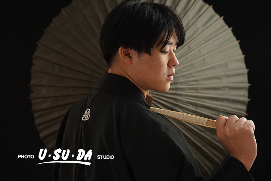 黒の羽織袴でかっこよく…!成人男子撮影