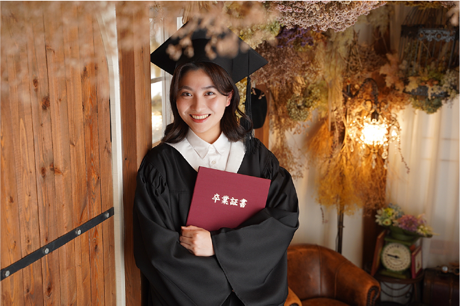 卒業証書をもって家族ともお撮影したい方は後撮り。